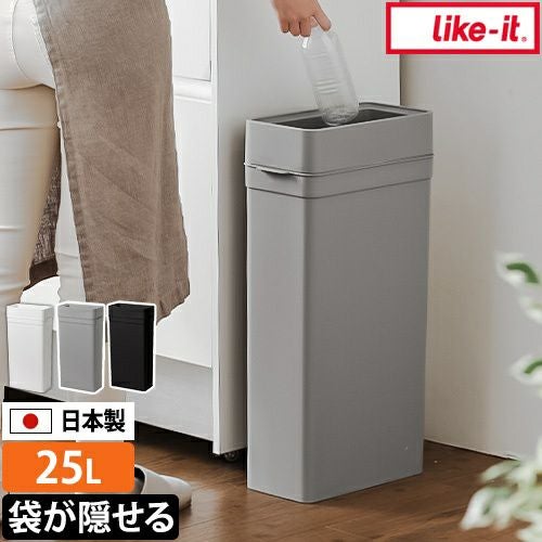 使いやすさと美しさを兼ね備えた、蓋なしダストボックス「like-it マルチパーパスビン」。開口部が広いので、ゴミが捨てやすく袋交換も楽ちん。中身が見えにくい構造とスマートなフォルムで、キッチンやリビング、洗面所など様々なシーンに溶け込みます。家庭用としてはもちろん、シンプルな見た目なのでデスク横や給湯室などオフィス用としてもおすすめ。安心の日本製です。