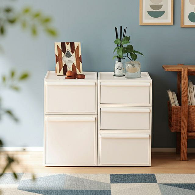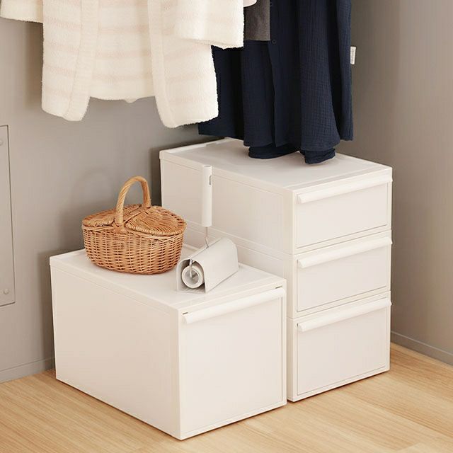 使う場所や用途に応じて、ピタッとハマる収納スペースを作ることができます。衣服、靴下、下着や事務用品などの小物をスッキリ収納。全面フラットでシンプルなデザインは、使う場所を選びません。