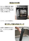 全自動で挽きたてコーヒーを楽しめるsiroca コーン式全自動コーヒーメーカー カフェばこPRO。高精度のコーン式ミルを採用し、豆の挽きムラを抑え、雑味の少ないコーヒーを淹れられます。豆・水の計量不要、タイマーつきで忙しい朝も楽!抽出温度は約94℃か約84℃から選べ、豆は粗挽きから細挽きまで無段階調節可能。カップ約6杯分まで淹れられ、豆は200gまで保存できます。