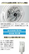 羽根を前後2重構造にした「Wファン」採用で、パワフルな風を生み出します。1枚羽根の場合と比べて風速は約35%UP!約14m先に風を送り、約21畳のお部屋を快適にします。