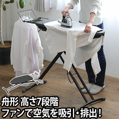 アイロン台 スタンド式 折りたたみ 舟形 おしゃれ 高さ調節 空気 吸引 排出 モダン ブラック 黒