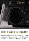 大型ボディを活かした10W+10W=20Wのハイパワー出力で迫力の音質を実現。高音、低音調整も可能な13.5cm+3cmのコーンツイーターを採用した2WAYステレオバスレフスピーカー構成です。