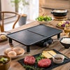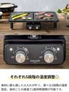 左右で温度調整できる2枚のプレートで同時に調理!今までのホットプレートにはない、グリル料理が堪能できます。
