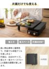 温度調節機能もあり、食材に応じた最適な温度で調理できます。2面のプレートは、お好み焼きや焼肉に対応し、油落ちスリットで余分な油をしっかり落とせます。プレートは洗えるため、丸洗いも簡単。おしゃれなデザインで、キッチンに映える一台です。