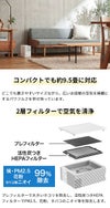 プレフィルターで大きいホコリを除去し、活性炭つきHEPAフィルターでPM2.5、花粉、タバコのニオイ等を除去します。