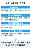クイックミニスチーマーは、手間のかかる蒸し料理を簡単・手軽に作れる電動蒸し器。忙しくても健康や美容を意識したい人、手軽にヘルシーメニューをつくりたい一人暮らしの人、毎日の家族のお弁当に1品プラスしたい場合にも、離乳食作りにも便利です。この小さいスチーマーが1台あるだけで、毎日の食生活が豊かになります。