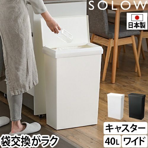 SOLOW (ソロウ) 通路で使える ワイドダストボックス ハンドオープン40L