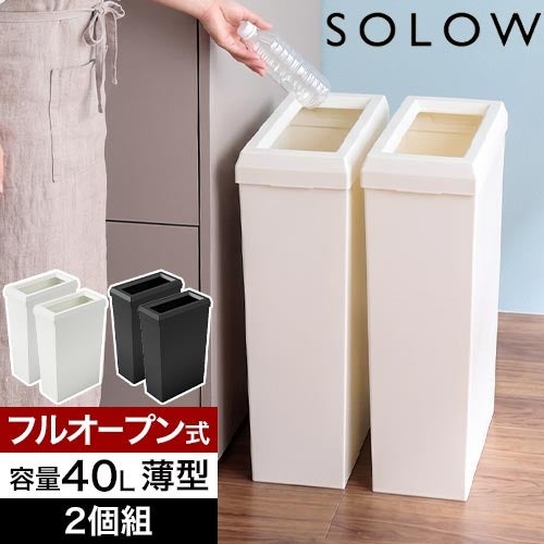 SOLOW (ソロウ) 隙間や通路で使える スリムダストボックス フルオープン 40L 2個セット