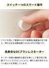 モーター内部の機械的な接点を無くして電子的に制御(ブラシレス)することにより、優れた耐久性をもちつつ省エネを実現しています。