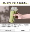 付属キャップをつければ、そのまま持ち運べます。ガラスより軽くて割れにくい樹脂製ボトルで安心。