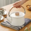 真っ白なホーローが美しいkaico ケトル。熱伝導性に優れたホーローと広い底面によってスピーディーにお湯を沸かします。持ちやすく熱くならない木の取手や湯切れの良い注ぎ口など使いやすさも抜群。汚れやニオイがつきにくく、大きな開口でお手入れもラクラク。清潔感のあるホーローと天然木がおしゃれで、どこか懐かしいフォルムはだしっぱなしにしたくなります。