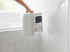 裏⾯にマグネットが埋め込まれているので、簡単に浴室壁⾯に取り付けられます。お掃除時も便利です。
