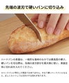一般的なパン切りと違い、波刃は先端のみ。切り始めにきっかけを作り、あとは鋭い直刃で引き切るため、パンを潰さずスパッと切れます。