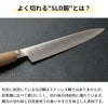 刃の中心にダイス鋼(SLD鋼)を使用。ステンレス並みの錆びにくさと、鋼のようなよく切れる鋭さを両立しました。トマトもスッと切れます。