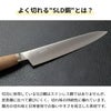 刃の中心にダイス鋼(SLD鋼)を使用。ステンレス並みの錆びにくさと、鋼のようなよく切れる鋭さを両立しました。トマトもスッと切れます。