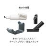 コードレスの充電式。付属する充電スタンドに乗せるだけで充電が開始されるので、コードを抜き差しする煩わしさがありません。
