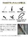 2つのアタッチメントが付属。掃除部を傷つけにくいシリコンノズル、ゴミをかき出して吸い取れるテーブルブラシです。同ブランドY010のアタッチメントも使用可能で、サブ掃除機に最適です。