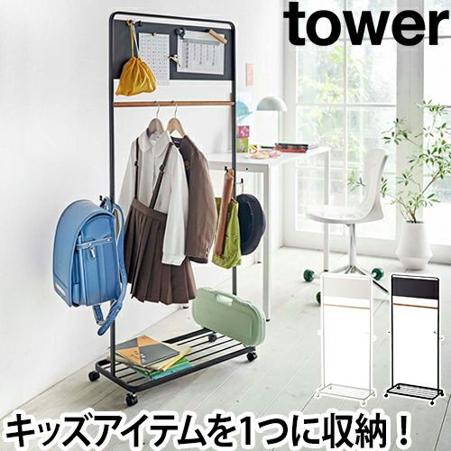 山崎実業 ハンガーラック ラック キッズハンガー ランドセルラック コートハンガー スチールラック メタルラック キャスター シンプル 頑丈 子供用 子供服 yamazaki タワーシリーズ [tower タワー キッズパネル付きハンガーラック 5175 5176