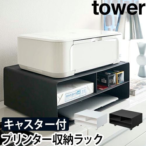 tower タワー 山崎実業 ツーウェイプリンター収納ラック プリンター 収納 ホワイト ブラック