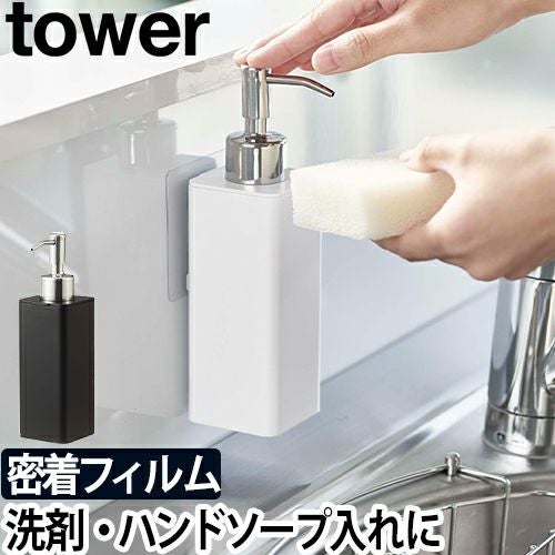 山崎実業/ディスペンサー/ソープディスペンサー/ソープポンプ/詰め替えボトル/ハンドソープボトル/おしゃれ/浮かせる収納/壁面収納/キッチン収納/キッチン/収納/yamazaki/タワーシリーズ/ブラック/ホワイト/tower