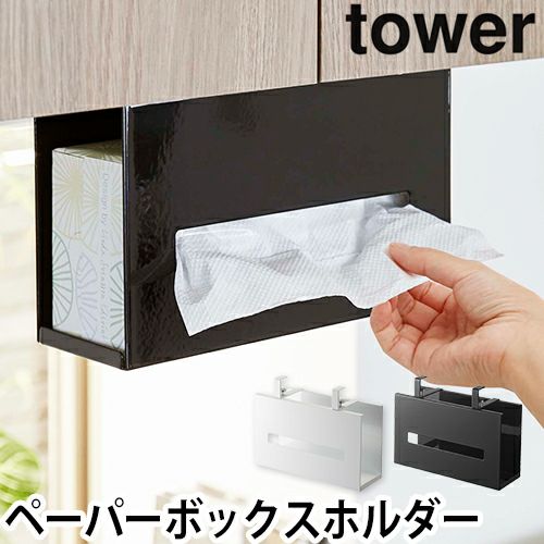 山崎実業/ティッシュケース/ペーパータオルケース/キッチンペーパーホルダー/ティッシュカバー/吊り下げ/北欧/雑貨/戸棚下収納/洗面収納/キッチン/台所/洗面所/洗面台/収納/yamazaki/タワーシリーズ/白/ホワイト/黒