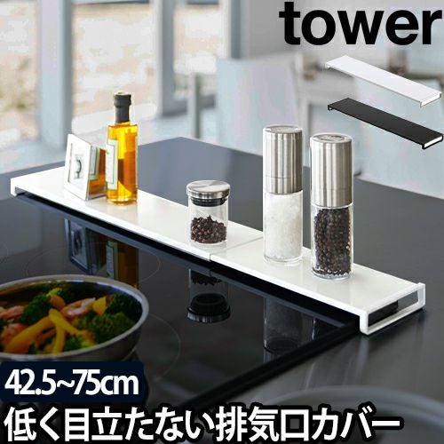 山崎実業 排気口カバー 伸縮排気口カバー カバー 排気カバー グリルカバー コンロ奥カバー コンロカバー 調味料棚 調味料ラック コンロ奥ラック 60cm 75cm フラット ih 薄型 コンロ yamazaki タワーシリーズ [tower タワー 伸縮排気口カバー フラットタイプ 5732 5733]