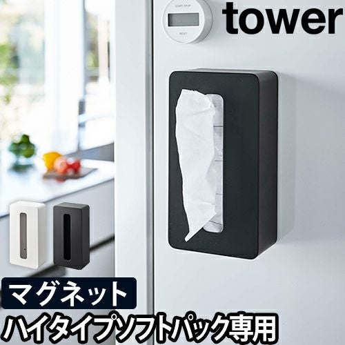 山崎実業 ティッシュケース ティッシュカバー おしゃれ マグネット 北欧 コンパクト 黒 白 スリム 縦 インテリア 生活感ない ソフトパック用 リビング収納 キッチン収納 [tower タワー マグネットコンパクトティッシュケース ハイタイプ 5806 5807]