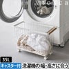 「tosca ランドリーバスケット キャスター付き ワイド&ロー」は、ワイドサイズのランドリーバスケット。ドラム式洗濯機の扉の前にピタッと置けるサイズ設計なので、身体を洗濯機に近づけてラクに洗濯物の出し入れができます。ストッパー付きのキャスターと、立ったまま引っ張りやすい長めハンドルで洗濯物を入れても楽に移動できます。家族分まとめて入る大容量の35Lです。