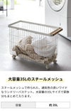 大容量の35Lサイズ。素材は通気性と丈夫さが魅力のスチールメッシュ。底は隙間が小さめで靴下などが落ちる心配もありません。