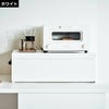 トースターやトレーやマグなどの小物などを置いて上スペースを有効活用。ケースに収納したパンを取り出してすぐに焼くことができて便利です。
