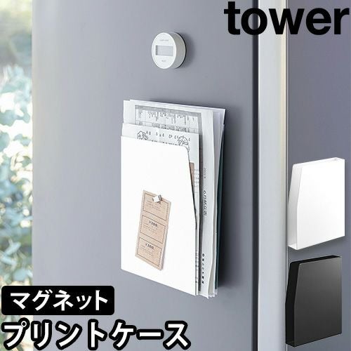 「tower(タワー) マグネットプリントケース」は、付属のマグネットで冷蔵庫のスチール面などに貼り付けて、プリントや雑誌をすっきり整頓できる収納ケース。2方向が開口部になっていて、縦向きでも横向きでも自在に使えます。また、スチール製なのでメモなどを貼り付けることも◎