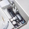 引き出しのサイズや収納したいものに合わせて、縦にも横にも重ねて収納できる「tower 縦横重ねられる引き出し整理収納ケース 深型 2個組」。異なるサイズを使用してもキレイに統一できるので、ごちゃつきがちな引き出しの整理整頓に便利です。キッチンではカトラリー、洗面台では化粧水や乳液など、様々なものを仕分ければ、すっきり整い、生活もしやすくなります。