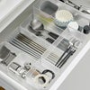 引き出しのサイズや収納したいものに合わせて、縦にも横にも重ねて収納できる「tower 縦横重ねられる引き出し整理収納ケース L 2個組」。異なるサイズを使用してもキレイに統一できるので、ごちゃつきがちな引き出しの整理整頓に便利です。キッチンではカトラリー、洗面台ではコスメ、デスクでは文房具など、様々なものを仕分ければ、すっきり整い、生活もしやすくなります。