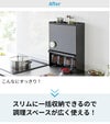 数が増えてごちゃつきがちな調味料をすっきりとひとまとめ。生活感を隠しつつ汚れからガードします。スリムに一括収納できるので調理スペースが広く使える!