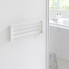 お風呂上がりにすぐ使いたいタオルや着替えの一時置きに便利な棚。壁面に設置できるので浴室扉のすぐ近くにも設置しやすく、動線がスムーズに。幅65.5cmのワイドサイズあり、タオルハンガーや物干しとしても活用できます。
