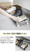 下駄箱下のデッドスペースを活用して、省スペースに靴収納が増やせる「tower 引き出せるキャスター付きシューズラック」。キャスター付きでサッと引き出せるから、日常履きの靴をしまっておくのに便利です。