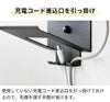 充電コードを通せるので収納しつつ充電も行えます。使用しない時も充電コード差込口を引っ掛けておけて、配線もスッキリまとまります!