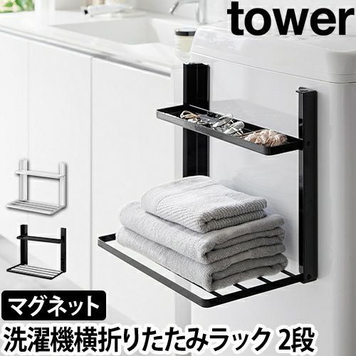 tower (タワー) 洗濯機横マグネット折り畳み棚 2段