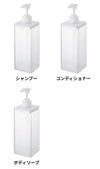 シャンプー、コンディショナー、ボディソープの3種展開。ボトルの印字もさりげなく主張しすぎないのがポイントです。