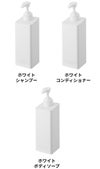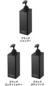 シャンプー、コンディショナー、ボディソープの展開。ボトルの印字もさりげなく主張しすぎないのがポイントです。