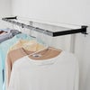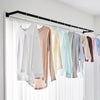 鴨居、窓枠に取り付ける室内物干しです。床にスタンドを設置する場所がなくても、物干しを浮かせて設置できるので、収納スペースを節約できます。