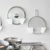 置き場所に困る鍋蓋を収納できる鍋ふたスタンドです。キッチンパネルやコンロ奥などに設置すれば、土鍋の蓋や油はねガードも手に取りやすく便利!
