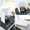 使い方に合わせて囲み方を自由に調整できるレンジガードです。折りたたみコンロを囲ったり、広げて油はねから広範囲を守ったり、と角度を自由に調整できます。調理中の食材を移す際もスムーズ。