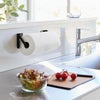 左右に分かれたホルダーなので、幅を自在に変えられるのがポイント。大きめの海外製キッチンペーパーもセットして使えます。