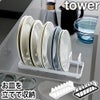 食器棚の中でかさばる大きなお皿をスッキリ収納できるディッシュスタンド「tower お皿スタンド」。直径18から30cm、高さ4cmまでの平皿や丸皿をスチール製のラックに立てて収納すれば今日使いたいお皿をサッと取り出せます!一つの仕切りの中に複数枚立ててOK!省スペース設計で、引き出しや戸棚にもスッキリ収まります!底面にはクッション付きで、棚を傷つけにくい仕様です。