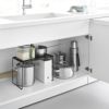 シンク下のスペースを無駄なく有効活用できる「tower 折り畳み積み重ね棚 L」。お鍋や調味料、ボウル、ザルなど、置き場所に困るキッチン小物を整理整頓できます。洗面シンク下に設置すれば、シャンプーや洗濯洗剤のストック収納にも便利!