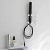 ヘアーアイロンをホルダーに掛けるだけの簡単壁掛け収納。使いたい時にサッと取り出し、使い終わったら掛けるだけのシンプルな設計です。