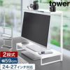 モニターの上下に収納が作れて、デスク上をすっきり整頓できる「tower モニター上下ラック 2段」。下段にはキーボード、マウスなどの周辺機器を整頓。上段にはペン・付箋・USBなど細かな物が収納できます。対応モニターサイズは24インチ〜27インチ。ラックの両側についた調節ネジで、モニターに合わせて高さ調整が簡単にできます。たわみにくく頑丈なスチール製です。