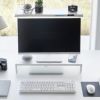 PCモニターを見やすい高さに上げつつ、机上の小物を整理整頓できるモニタースタンド。下段にはノートパソコンやキーボードなどの周辺機器、上段には筆記用具などの小物類を収納できます。