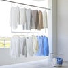 2段で洗濯物をたっぷり干せる「tower 折り畳み伸縮物干し2段ハンガー」。お手持ちのランドリーパイプや物干し竿に掛けるだけで簡単設置、いつもの物干しスペースを約2倍に拡張できます。横幅は82.5〜150cmに自由に調節可能で、屋内・屋外どちらでも活躍。クローゼットのポールに掛ければ収納スペースの拡張にも◎。使わない時はコンパクトに折り畳んで省スペース収納できます。